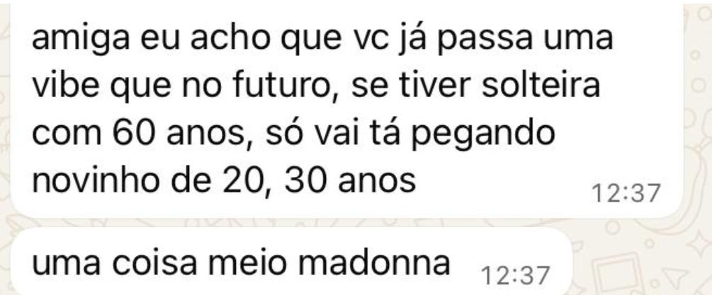 durante o date, vários foram os momentos que a juventude foi esfregada na minha cara. o ensino médio feito na pandemia. os amigos de 18 anos. os “na sua idade”. e claro, o momento vera fischer.
