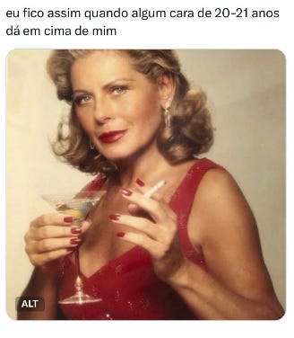 esse texto me fez refletir sobre muitas coisas - amei - mas a principal delas é: será que eu, aos 34 anos, me refiro a mulheres de 42/43/44 como “mulheres mais velhas”?
